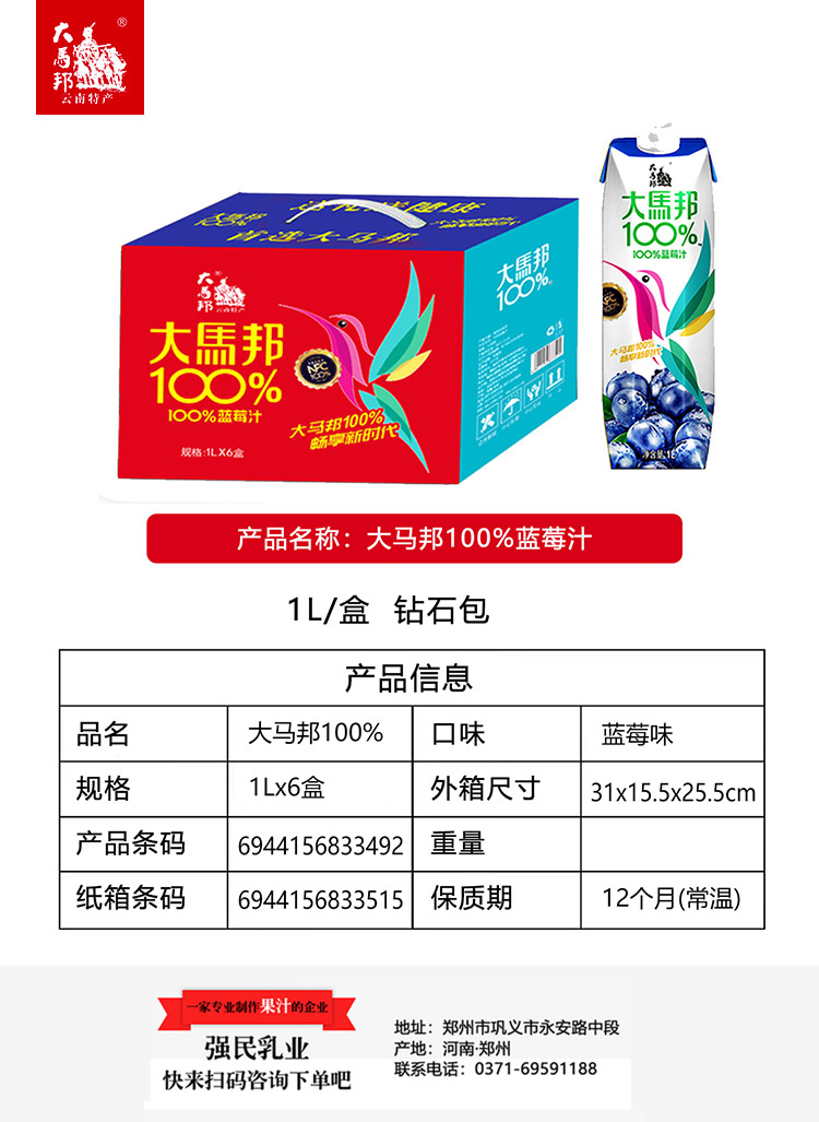 大馬邦1L鉆包-純真果汁飲料-藍(lán)莓汁